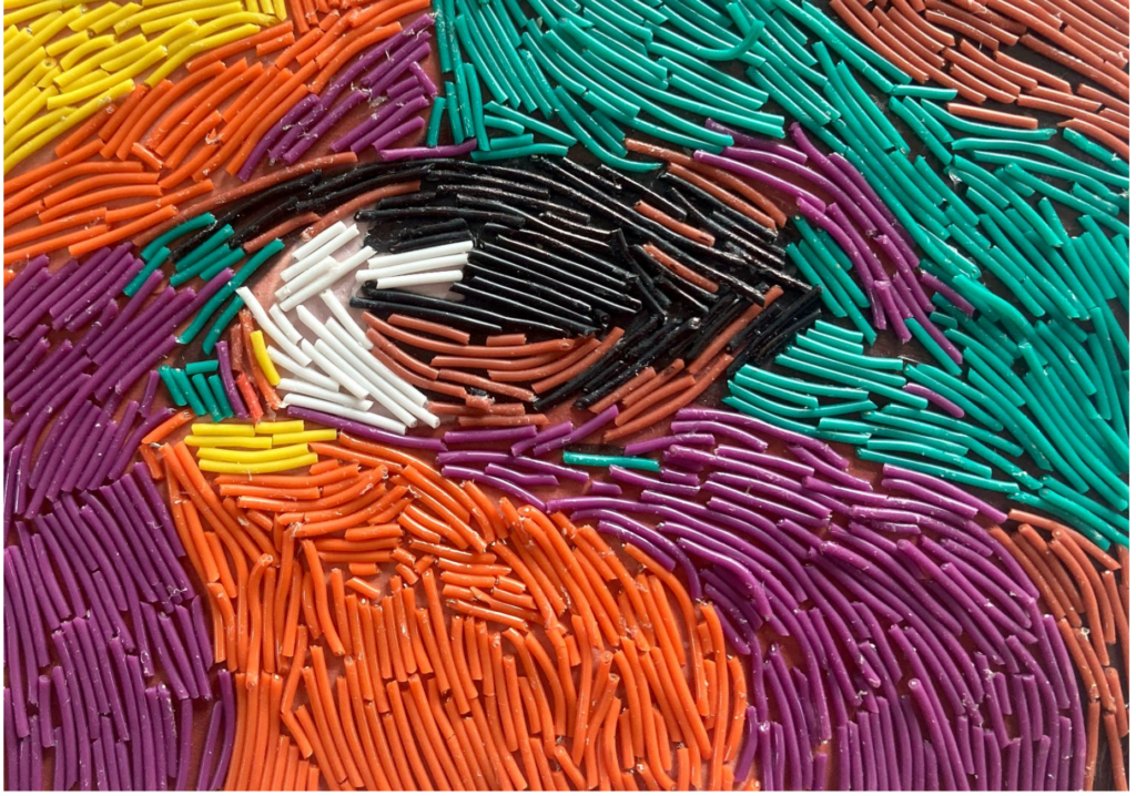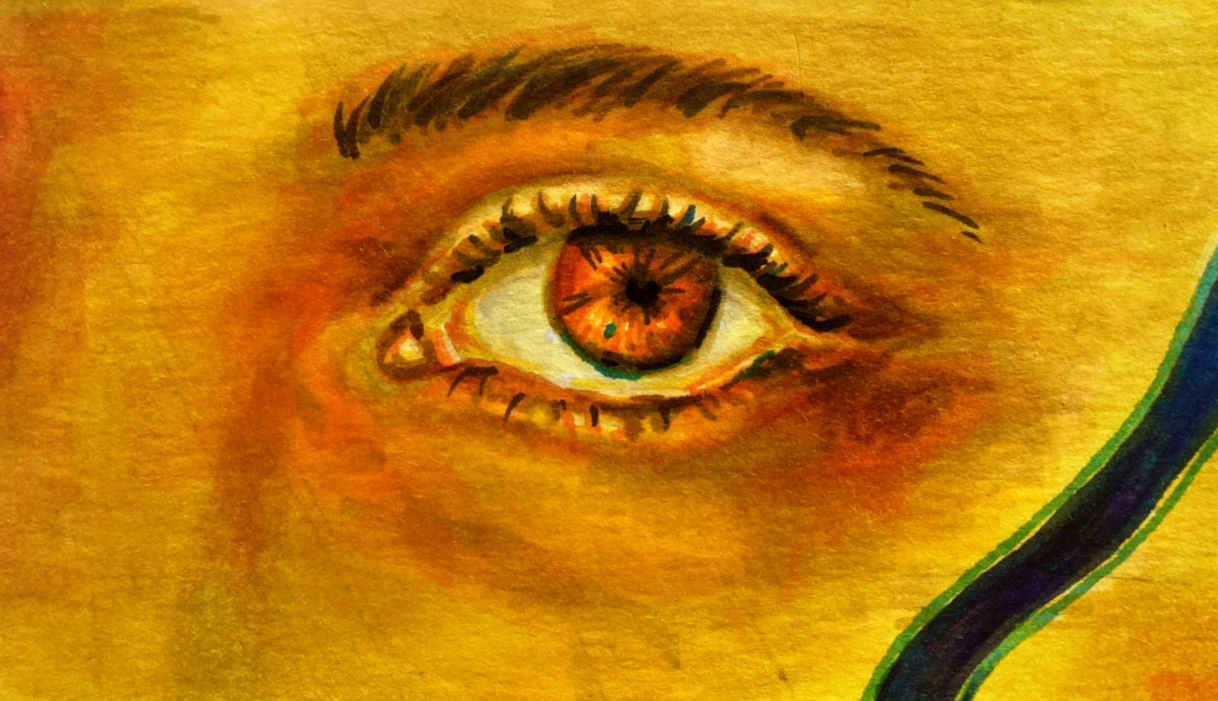 Then, I digitally vectorised the artwork (cropped to show only the eyes) and drew it using impressionist lines inspired by Van Gogh. The colours I chose were the same as the colours of the wires I owned to make the transition easier.